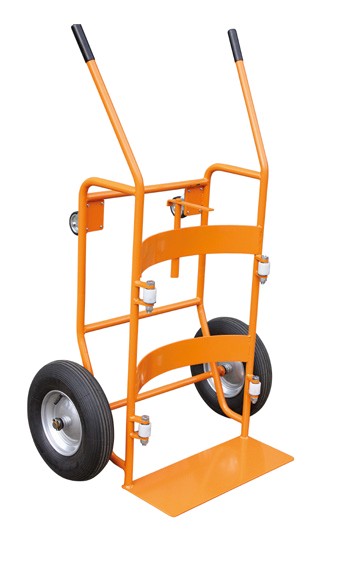 Konfigurator neu startenHandwagen zum Transportieren von Sicken-Fässern mit luftgefüllten Reifen. Die Fässer liegen bündig in den gerundeten Halterungen auf und werden zusätzlich von vier Rollen aus Polyamid gestützt. Die Stützbügel sind zusätzlich mit 2 kleinen Vollgummirädern versehen. So kann das Fass auch liegend geschoben werden. Mit handfreundlichen Gummigriffen.