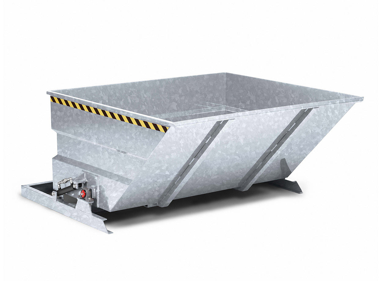 | Konfiguration öffnen | RGK-500 (500dm³) | mit Radsatz (Polyamid, Durchm. 250 mm, Tragkraft 3.000 kg) | mit 2-tlg., verzinktem Deckel | verzinkt | mit hydraulischer Kippbremse & Aufrichtbügel für ebenerdige Entleerung | 610 | 1.045 | 3.000 | 2.220 x 2.380 x 1.545 |